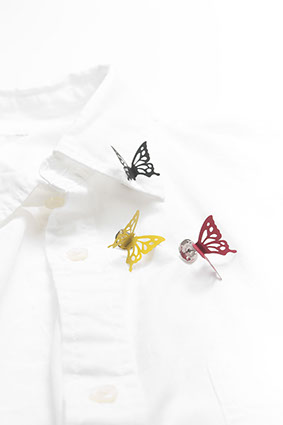 Dieser Schmetterling scheint gerade erst gelandet zu sein. Aus hochwertigen Metallen gefertigt dient er als bunte Brosche oder auch als Pin für die Pinnwand.