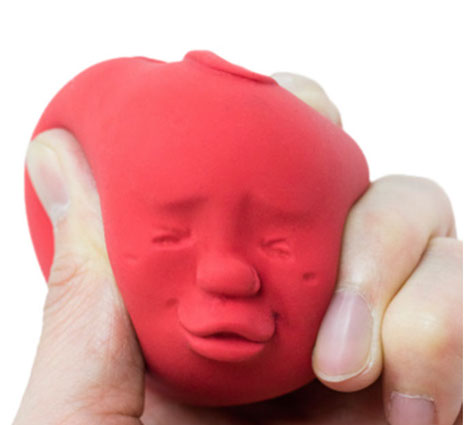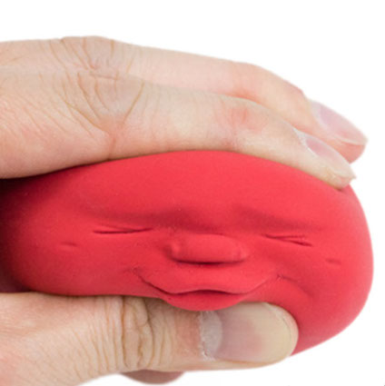 Er hält es aus und kommt immer wieder in seine Ursprungsform zurück. Dabei verzeiht er sein Gesicht zu witzigen Grimassen, sodass der Stress bald vergessen ist.
