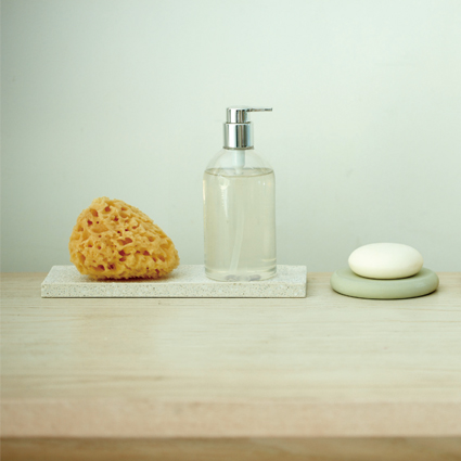 Aus natürlichem Kieselgur hergestellt nimmt die Ablage Feuchtigkeit auf. Das poröse Steingut leitet Wasser in das Innere und gibt es langsam an die Umgebung ab.