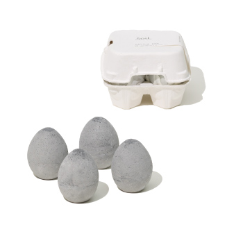 Aus natürlichem Kieselgur und Aktivkohle hergestellt nimmt das Egg Feuchtigkeit und Geruch auf.