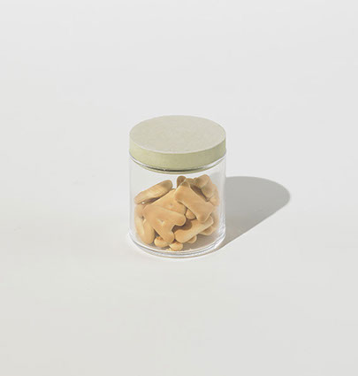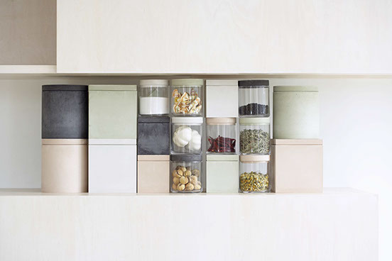 Aus Glas und natürlichem Kieselgur hergestellt nimmt der Container Feuchtigkeit auf. Lebensmittel können so trocken gelagert werden und bleiben frisch.