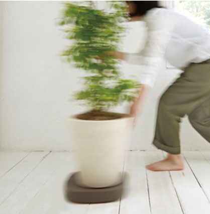 Der Plantable ist ein handliches Rolltablett für Blumentöpfe. So können sie problemlos und ohne Kraftaufwand transportiert werden.
