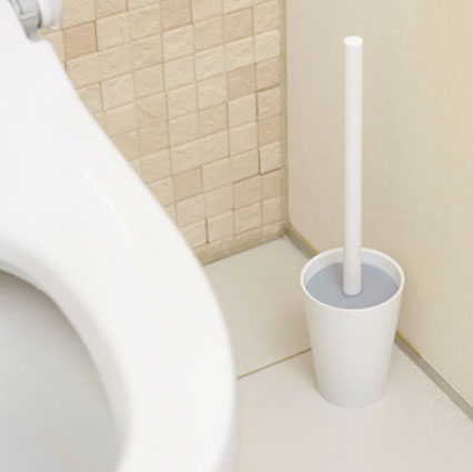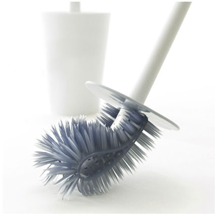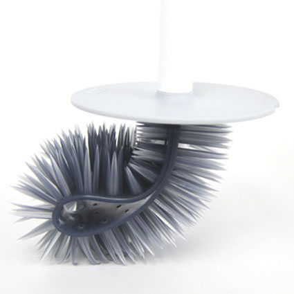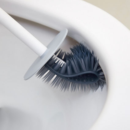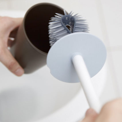 Das Design ist schlicht und effizient. Weil die Bürste eine L-Form hat, erreicht sie jede Ecke. Das Material ist elastisch und trocknet schnell. Der Kegel im Inneren lässt die Bürste abtropfen und sorgt für Hygiene.