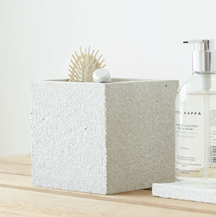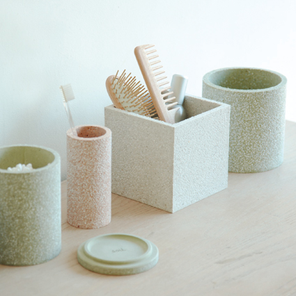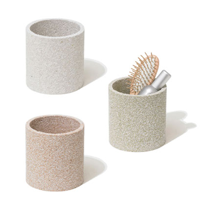 Aus natürlichem Kieselgur hergestellt nimmt der Container Feuchtigkeit auf. Wunderschöne Behälter für Bürsten und Kosmetik.