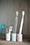 Aus natürlichem Kieselgur hergestellt nimmt der Zahnbürstenhalter Feuchtigkeit auf. Das poröse Steingut leitet Wasser in das Innere und gibt es langsam an die Umgebung ab.