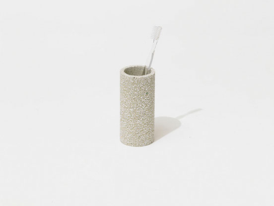 Aus natürlichem Kieselgur hergestellt nimmt der Zahnbürstenhalter Feuchtigkeit auf. Das poröse Steingut leitet Wasser in das Innere und gibt es langsam an die Umgebung ab.
