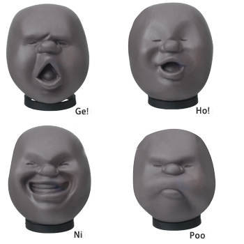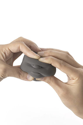 Er hält es aus und kommt immer wieder in seine Ursprungsform zurück. Dabei verzeiht er sein Gesicht zu witzigen Grimassen, sodass der Stress bald vergessen ist.