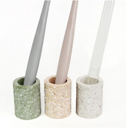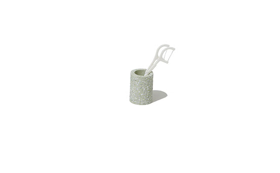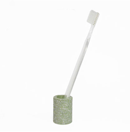 Aus natürlichem Kieselgur hergestellt nimmt der Zahnbürstenhalter Feuchtigkeit auf. Das poröse Steingut leitet Wasser in das Innere und gibt es langsam an die Umgebung ab.
